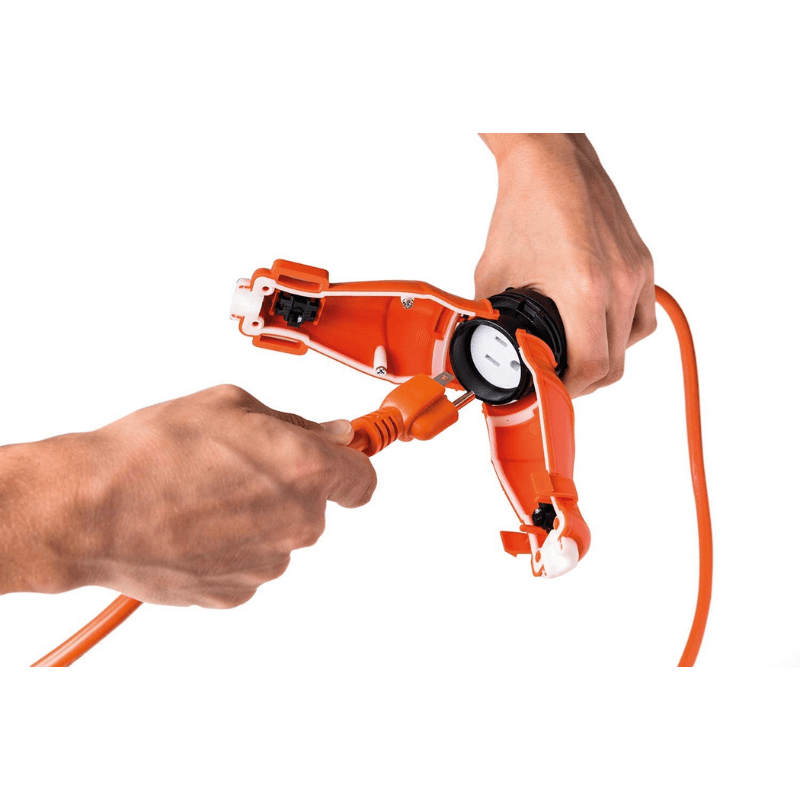Cable de extensión de 50 pies con conector de sello de seguridad, protege sus conexiones eléctricas y evita peligros eléctricos, para uso en exteriores e interiores.