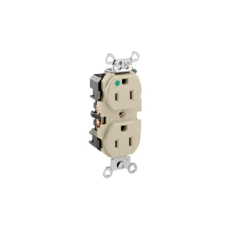 Toma de corriente dúplex, grado hospitalario de servicio pesado extra, superficie lisa, 15 A, 125 V, cable posterior o lateral, NEMA 5-15R, 2 polos, 3 cables, conexión a tierra automática