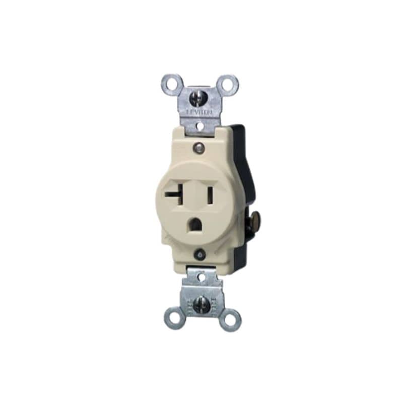Tomacorriente doble, grado de especificación comercial, doble voltaje, cara con hendiduras, 15 A, 125/250 V, cableado lateral, NEMA 5-15 R_6-15 R, 2-Pole, 3-Wire, puesta a tierra automática