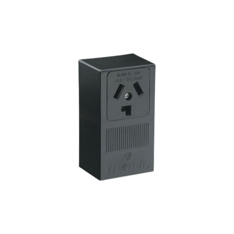 30 A, 125/250 V, NEMA 10-30R, 3P, 3W , Receptáculo de montaje en superficie, hoja recta, grado industrial, sin conexión a tierra, AL-CU, cableado lateral, correa de acero – negro